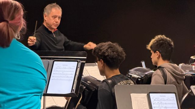 Venglevski had already been to Curtis a handful of times, performing at the Erickson Center for the Arts alone or with other musicians. This visit was different: It was much longer, and the songs his Houston Accordion Orchestra Retreat group was rehearsing were their own original compositions. The end result will be available sometime in April when the audio and video recordings will be available for listeners.