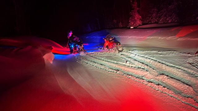 The six officers then headed their snowmobiles toward the callers’ last known location. They encountered significant road blockages caused by drifting snow and other debris, including tree branches.