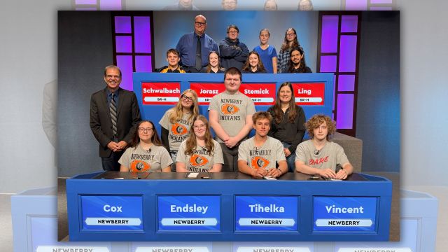 Newberry played Bark River-Harris in High School Bowl and won by a score of 210-110. Thirty-six schools from the U.P. and Northern Wisconsin field teams for WNMU-TV’s High School Bowl tournament, now celebrating 47 years on the air.
